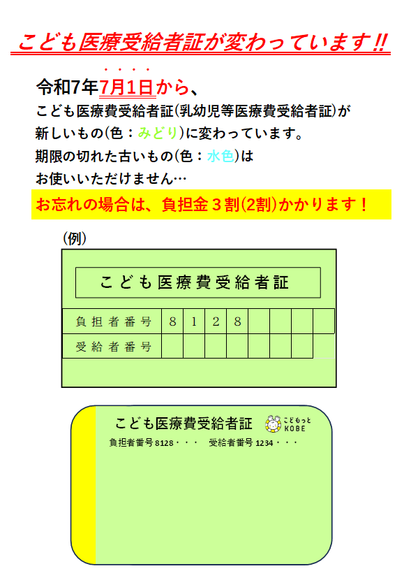 令和7年7/1~[こども医療受給者証]の有効期限が新しいものに変わっています。